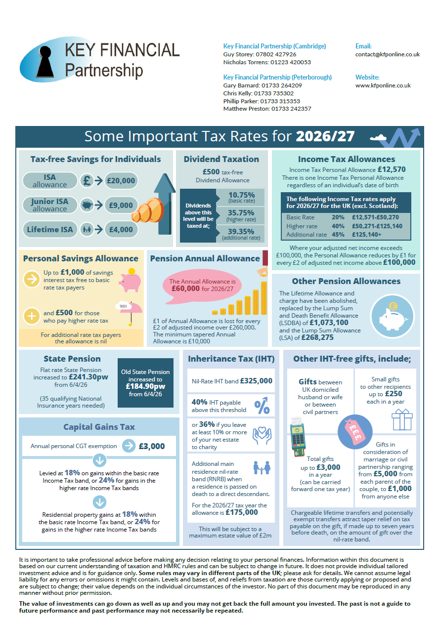 Download this snapshot as a reminder of the tax rates for this financial year.