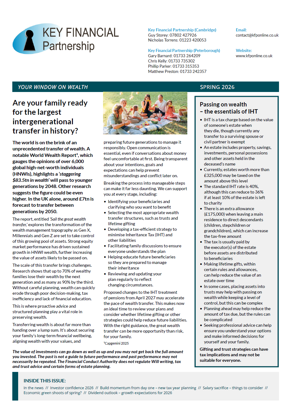 Here you will find our quarterly newsletter providing topical and current advice on all aspects of financial planning. These newsletters are intended to bring a few important, topical, issues to your attention. If you would like to discuss any of them (or any other aspect of your financial planning) in detail, please telephone for an appointment.